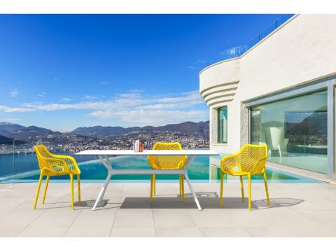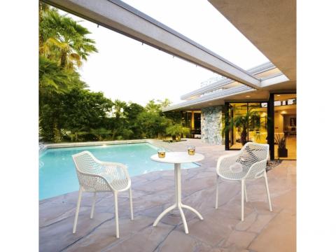 Designed with extraordinary strength which is due to the entire chair being one-piece injection moulded polypropylene added to this the legs are reinforced with glass fibre for even more stability. The plastic is packed with UV stabiliser, so this chair will not fade or go brittle even in the sunniest weather conditions. Stackable with 2 year warranty.