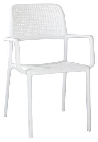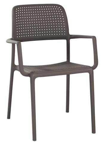 Recyclable resin chair for indoor or outdoor. 24 month warranty. Factory tested to 110kg, fully injected mold, UV stabilized, stackable to 8 high free standing, non slip rubber feet