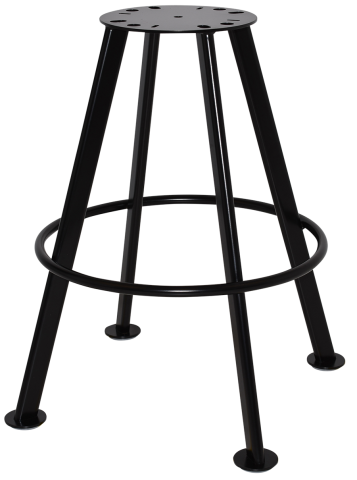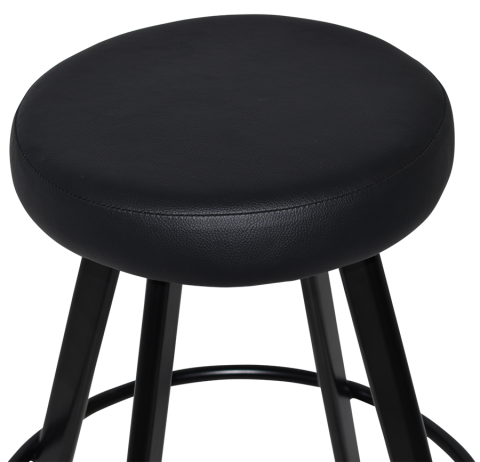 Black powdercoat mild steel frame. High density foam seat pad as standard upholstered in commercial grade black vinyl. Custom upholstered seat pads also available in a large selection of commercial grade fabrics & vinyls.