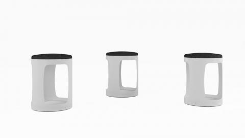 Black fabric seat ottoman with white powdercoated steel base, concealed adjustable rubber levelling feet, suitable for up to 110kg. Comes with a 3 year warranty.