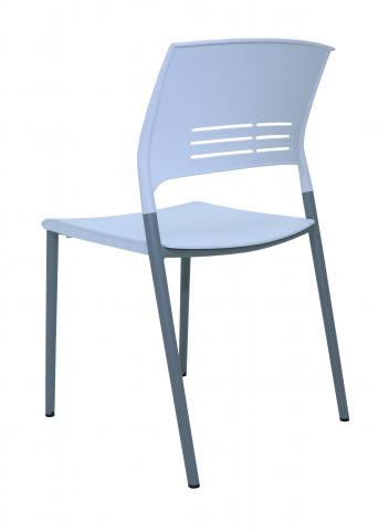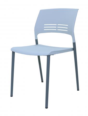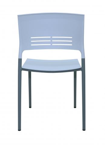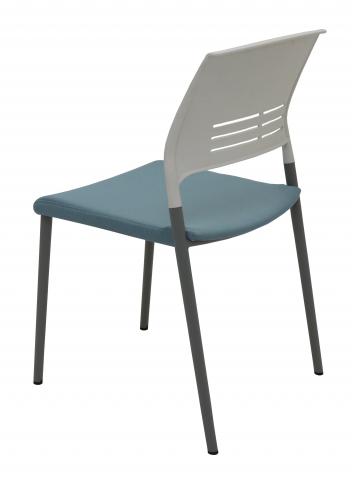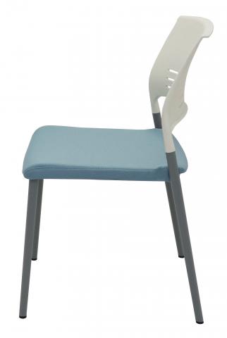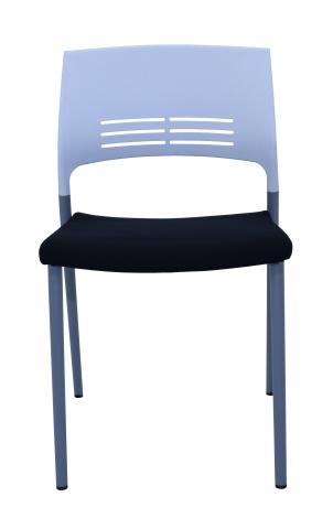 White elastic polypropylene breakout & meeting chair. 25mm diameter silver powdercoated steel legs with floor protectors. Stackable. Removable slip-over fabric seat covers available as an optional extra in black or light blue breathable fabric. 5 Year Commercial Warranty on Chair & 2 Year Commercial Warranty on Seat Covers. 120 Kg Weight Rating.