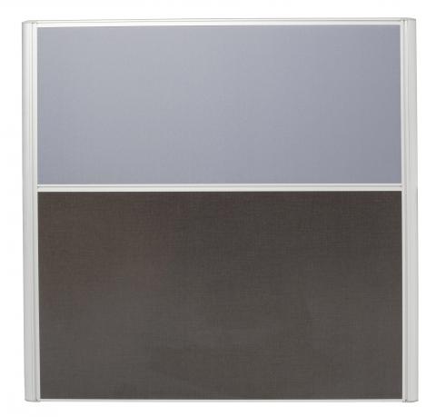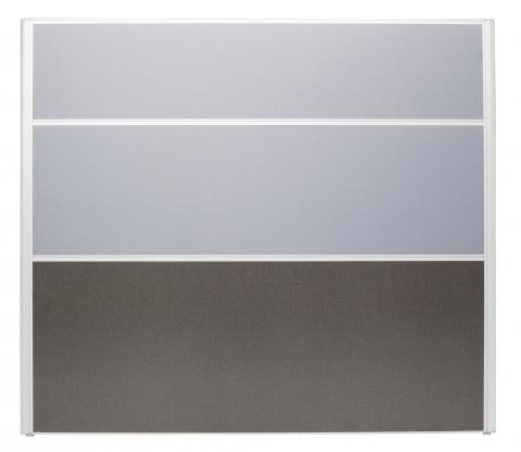 The slimline 30mm deep FX Screen is pinable with fabric upholstery above desk height and charcoal melamine under the desk to minimise wear.