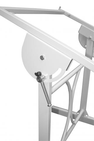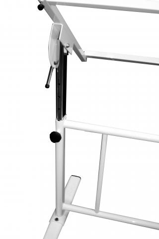 Manual telescopic height adjustment (A1 style is fixed height), variable angle, adjustable from horizontal to vertical, dual metal locking handles, robust stand. Varying stands to suit smaller 800×1200 board surface upto 1500×1000 board surface. Accessories available including parallel rule, pencil tray, drafting machines, tee squares (60, 90,103cm). The Parallel Rule has a single locking mechanism & bevelled inking edge. 18mm Table Tops in a selection of Laminex standard range of colour options