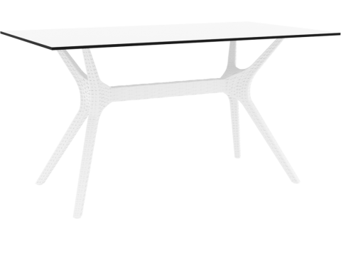 Table with rattan leg with HPL compact laminated top. Weather resistant, UV stabilised, suitable for indoor and outdoor commercial use and comes with a 5 year warranty.