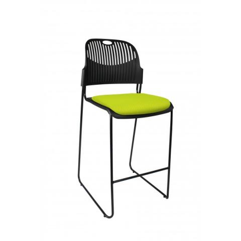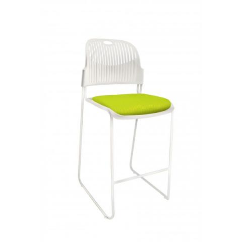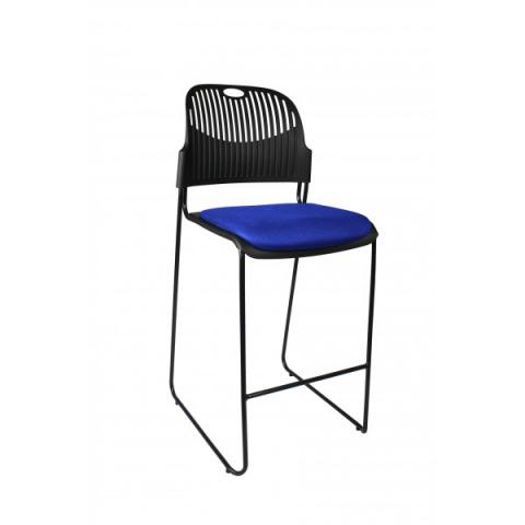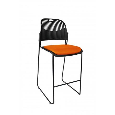 Ergonomically curved seat and back with soft flex for comfort. Comes in a black powdercoat frame with black polypropylene or white powdercoat frame with white polypropylene. Upholstered seat pad in a range of colours.