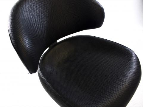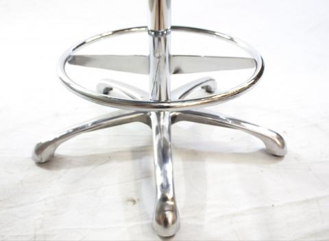Polished Alloy aluminium base with chrome footring, 100,000 rub count commercial grade black vinyl uphostery as standard, other fabric or vinyls on request.