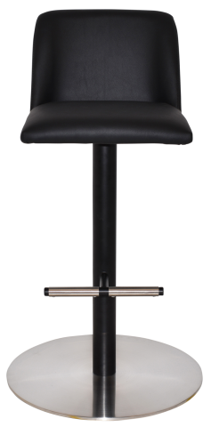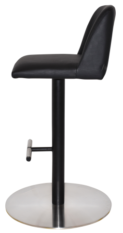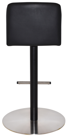 #201 Stainless Steel disc base & footrest, black mild steel column. High density foam shell upholstered in commercial grade black vinyl as standard or custom option available in a large choice of commercial grade fabrics or vinyls.