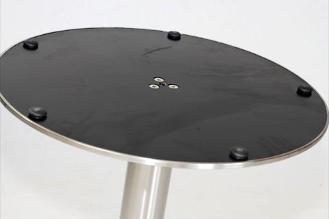 #201 Stainless steel with brushed satin finish frame with adjustable feet for indoor use. 12 month warranty. Table tops are available in Laminex commercial range of melamines or 13mm Compact Laminate colours. Also available in standard table height or dry bar height.