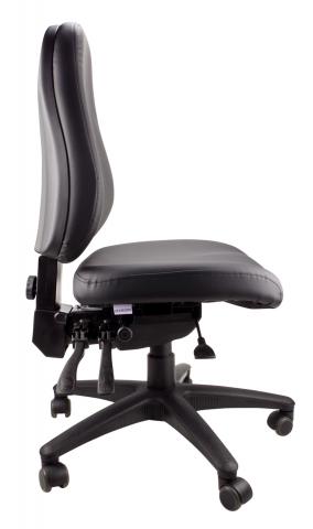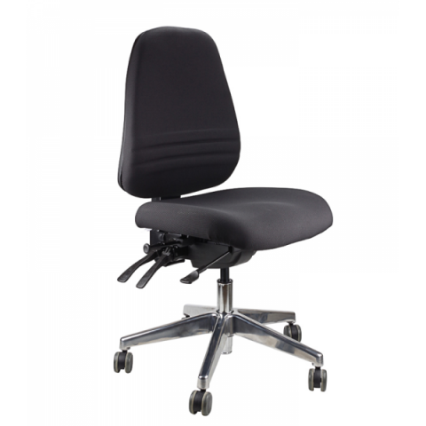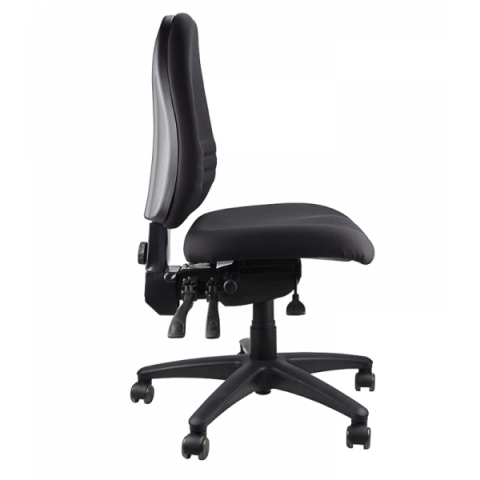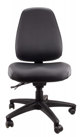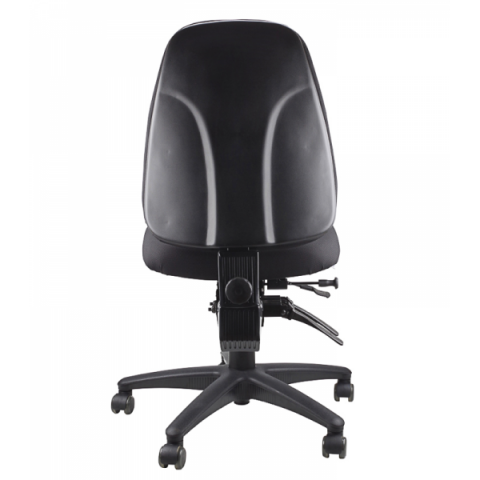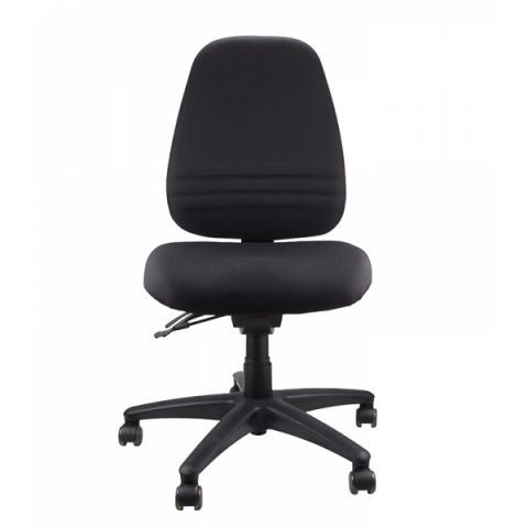 Full upholstered in commercial grade black fabric or black PU as standard, 4 lever mechanism, seat slider, pronounced lumber support, hand wheel back adjustment, 5 star black base as standard.