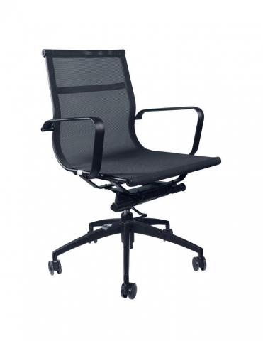 Great for executives or boardrooms – Features hard wearing and breathable mesh, back bar easily manoevres chair, 580mm footprint for mulitple boardroom positions, knee tilt mechanism with tension control, 5 year commercial warranty