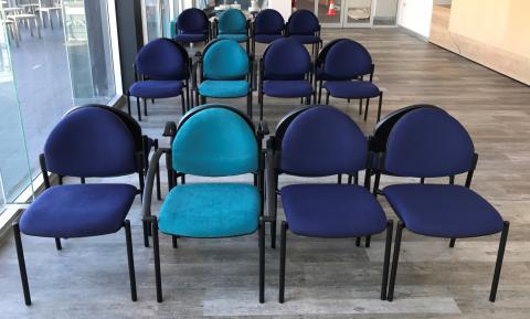 Functional chair design with the choice of round, square or mesh back. Although the Trilogy chair is stackable, the standard design has a 50 mm thick foam seat which lends itself more to comfort for those days of lengthy periods of sitting.