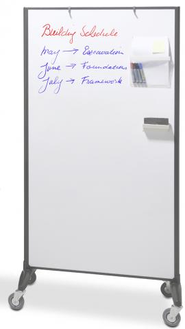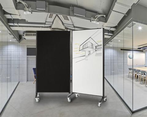 Functional & versatile room dividers which create smaller quieter zones. Units can be linked together to form any shape. Double sided – magnetic whiteboard on one side & grey pinnable fabric board on the other. Lockable 90mm castors. Supplied with 2 adjustable flipchart hooks & 150mm magnetic pen tray.